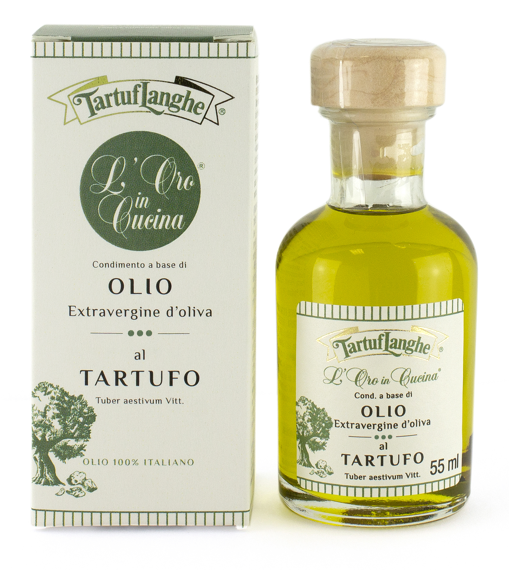 Ingredienti: olio extravergine di oliva Italiano 99%, tartufo d’estate Italiano liofilizzato (Tuber aestivum Vitt.) 0,15% (pari al 0,75% di tartufo fresco), aroma.