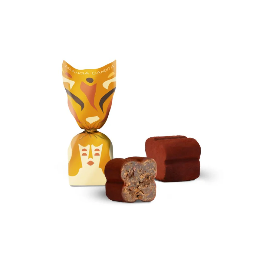 La dolcezza intensa dell’arancia candita, con la sua nota agrumata, si sposa elegantemente con la ricchezza e la profondità del cioccolato di copertura fondente, creando un equilibrio che conquista il palato con ogni morso.